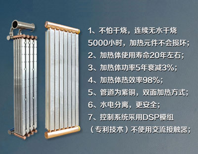 成功研發(fā)升級(jí)至第六代全新智能沈陽(yáng)全導(dǎo)體電鍋爐機(jī)組。產(chǎn)品采用全導(dǎo)體加熱變頻技術(shù),節(jié)能設(shè)計(jì),熱效率高達(dá)98%以上,水電分離,獨(dú)有的故障自檢,防凍防干燒等十大保護(hù);不使用交流接觸器,采用DSP控制模組、工作無(wú)聲音,不怕潮濕;采用國(guó)內(nèi)正泰原裝配件,穩(wěn)定耐用,智能控制,功率衰減小,比傳統(tǒng)沈陽(yáng)電鍋爐節(jié)能30%以上“公司能夠生產(chǎn)單機(jī)500-6000千瓦大型電鍋爐、大功率電鍋爐、大型工業(yè)電鍋爐、大型電加熱鍋爐”